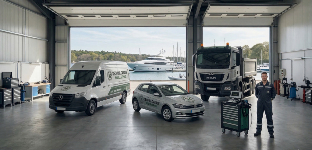 Sequoia Garage provides professional mobile diagnostics, maintenance and repair services across the UK and Europe — delivering fast, reliable support wherever you need it.